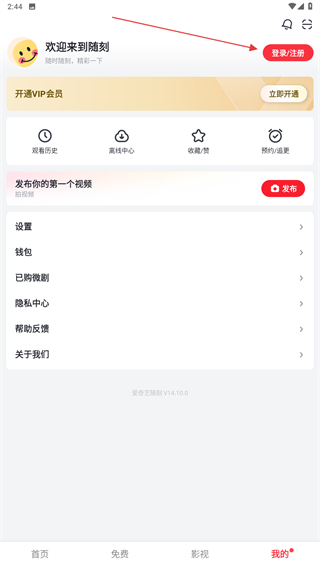 1、打開愛奇藝隨刻的APP,進(jìn)入首頁點(diǎn)擊右下角我的按鈕。