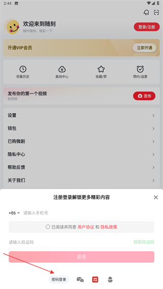 3、在下方彈出的登錄方式中,選擇并點(diǎn)擊密碼登錄的按鈕。