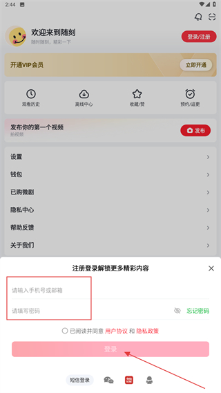 4、輸入手機(jī)號、密碼,再點(diǎn)擊登錄的按鈕即可完成登錄。