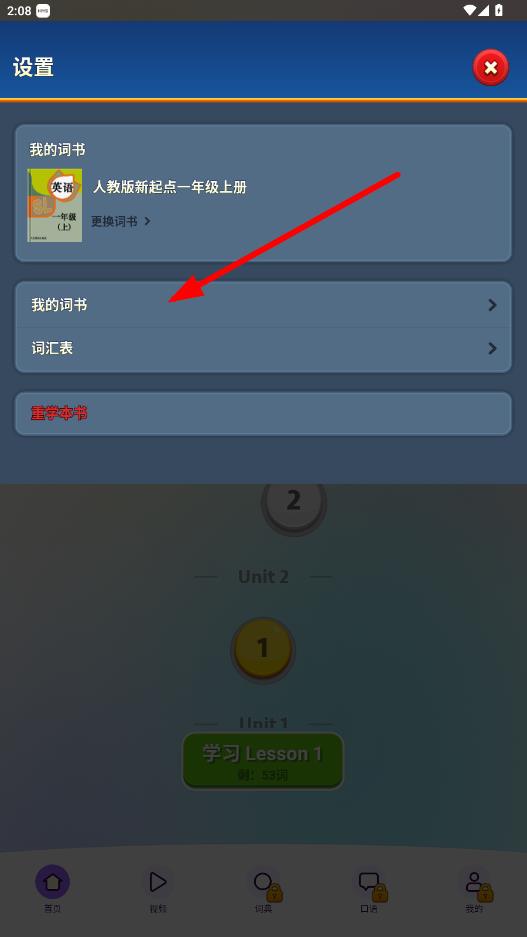 2、在設(shè)置頁(yè)面中,點(diǎn)擊我的詞書(shū)選項(xiàng)。
