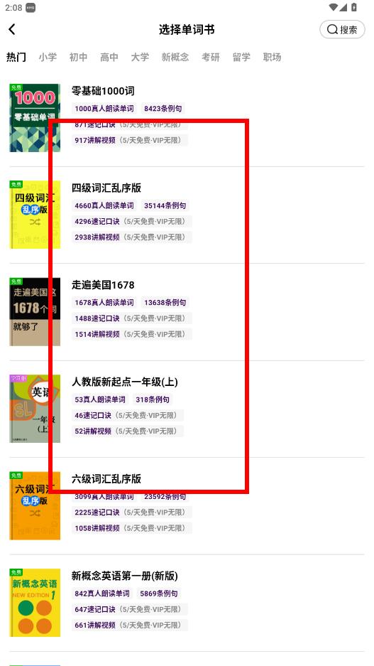 4、在選擇單詞書(shū)頁(yè)面,找到想要添加的書(shū)籍模板,點(diǎn)擊對(duì)應(yīng)書(shū)籍即可添加。