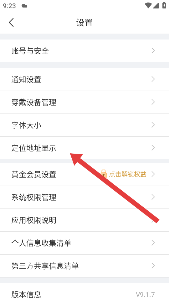2、在設(shè)置的頁面中,需要點(diǎn)擊定位地址顯示的選項(xiàng),然后跳轉(zhuǎn)至定位地址顯示設(shè)置的頁面。