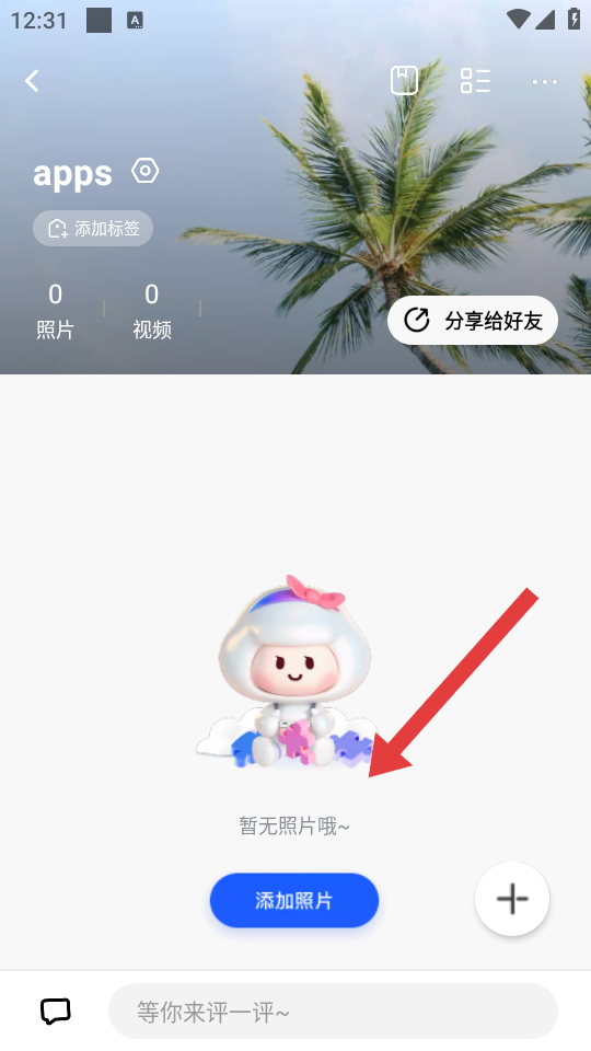 4、若需補充照片,在相冊詳情頁面點擊添加照片按鈕,可繼續(xù)從其他位置導(dǎo)入圖片。
