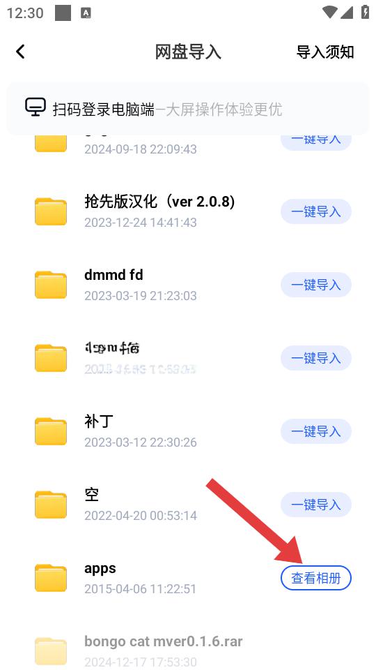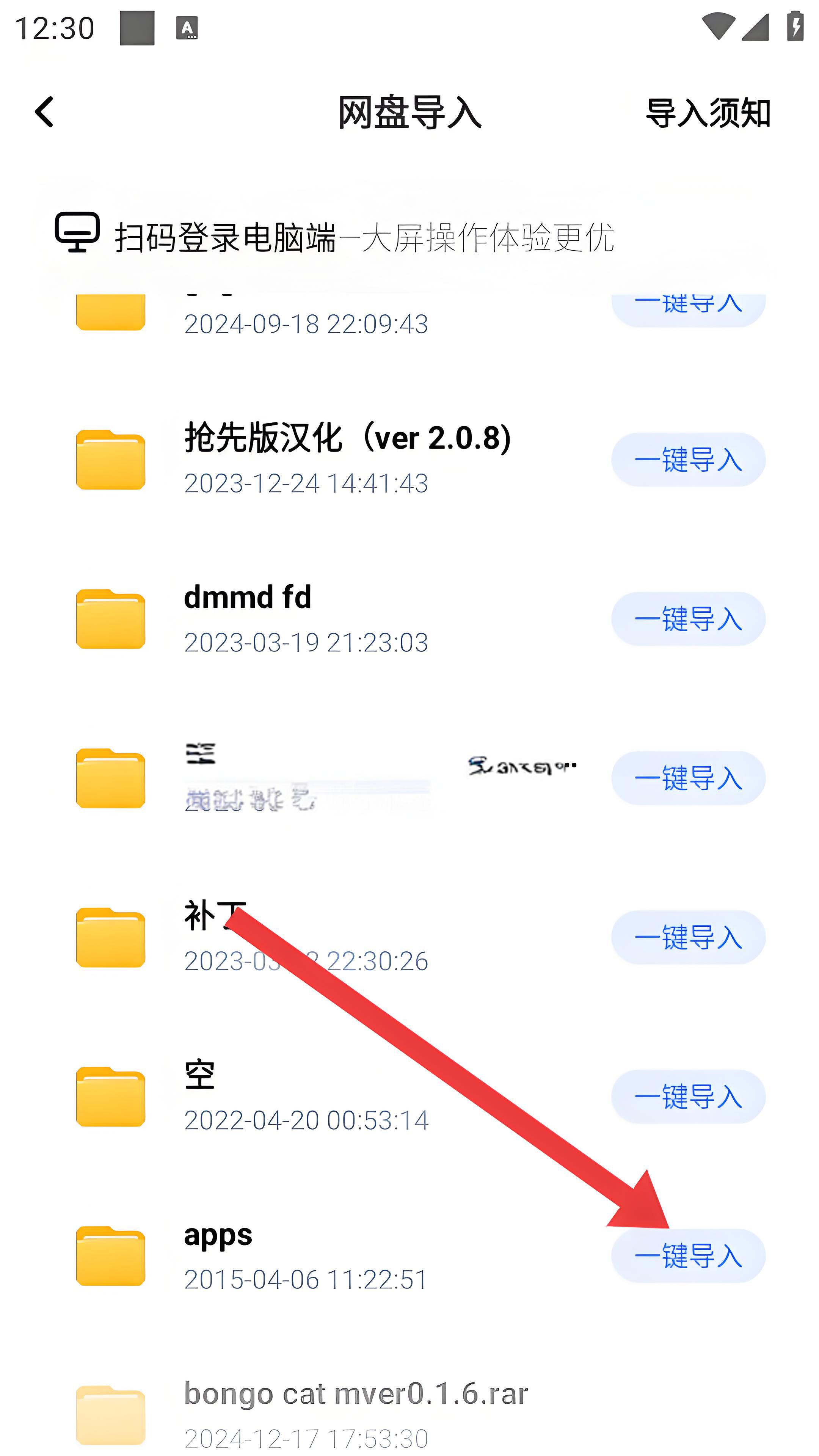 2、在網(wǎng)盤導(dǎo)入頁面,找到需要導(dǎo)入的百度網(wǎng)盤文件夾,點擊其右側(cè)的一鍵導(dǎo)入按鈕。