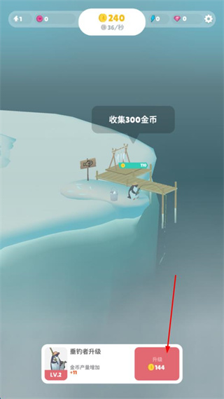 3、等待金幣收集至指定數(shù)量,點(diǎn)擊升級按鈕提升垂釣者等級。