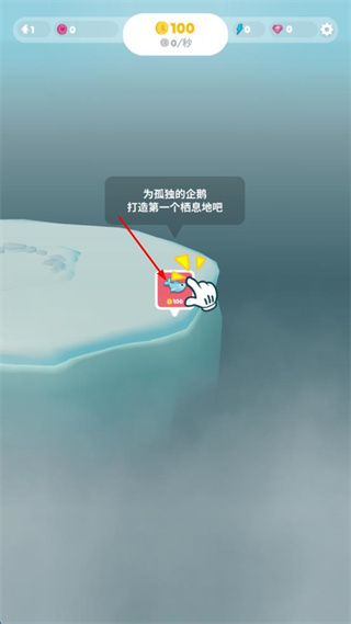 2、點(diǎn)擊場景內(nèi)的對應(yīng)按鈕,消耗金幣為企鵝打造第一個(gè)棲息地。