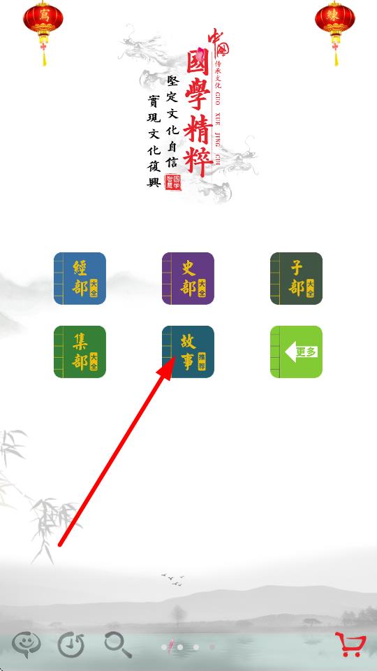 1、打開國學(xué)啟蒙app進(jìn)入主界面,若想閱讀故事,點(diǎn)擊故事按鈕。