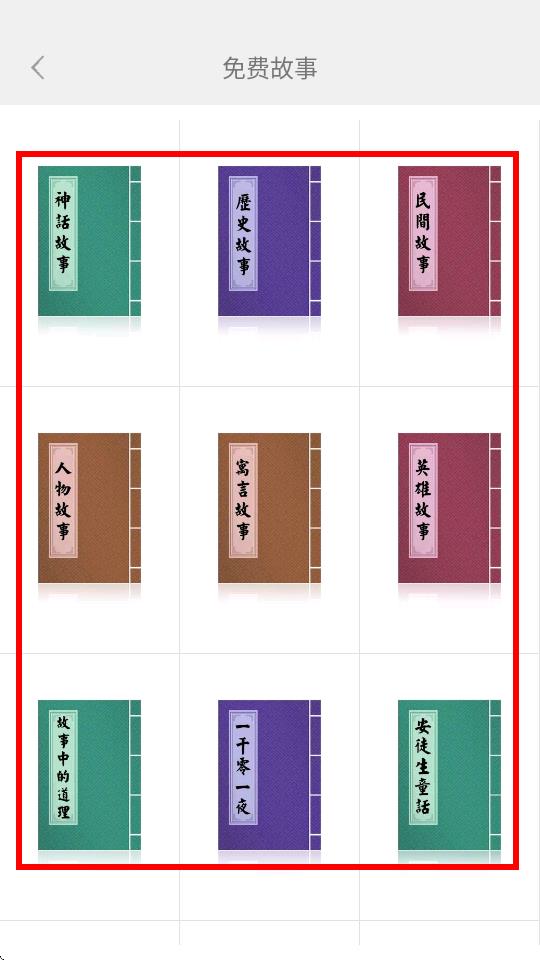2、進(jìn)入免費(fèi)故事頁面后,可按需選擇故事類別,如神話故事、歷史故事等。