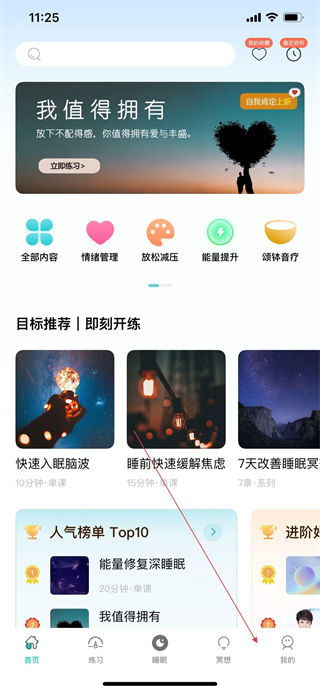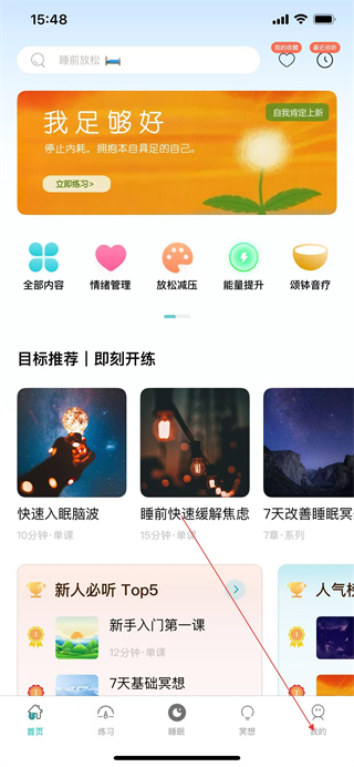 1、打開now冥想App的首頁,點(diǎn)擊底部的我的選項(xiàng),進(jìn)入個(gè)人中心頁面。