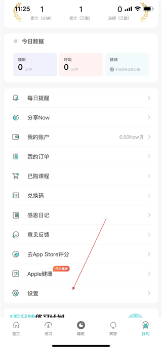 1、打開Now冥想APP,點(diǎn)擊底部我的,進(jìn)入個(gè)人頁面。