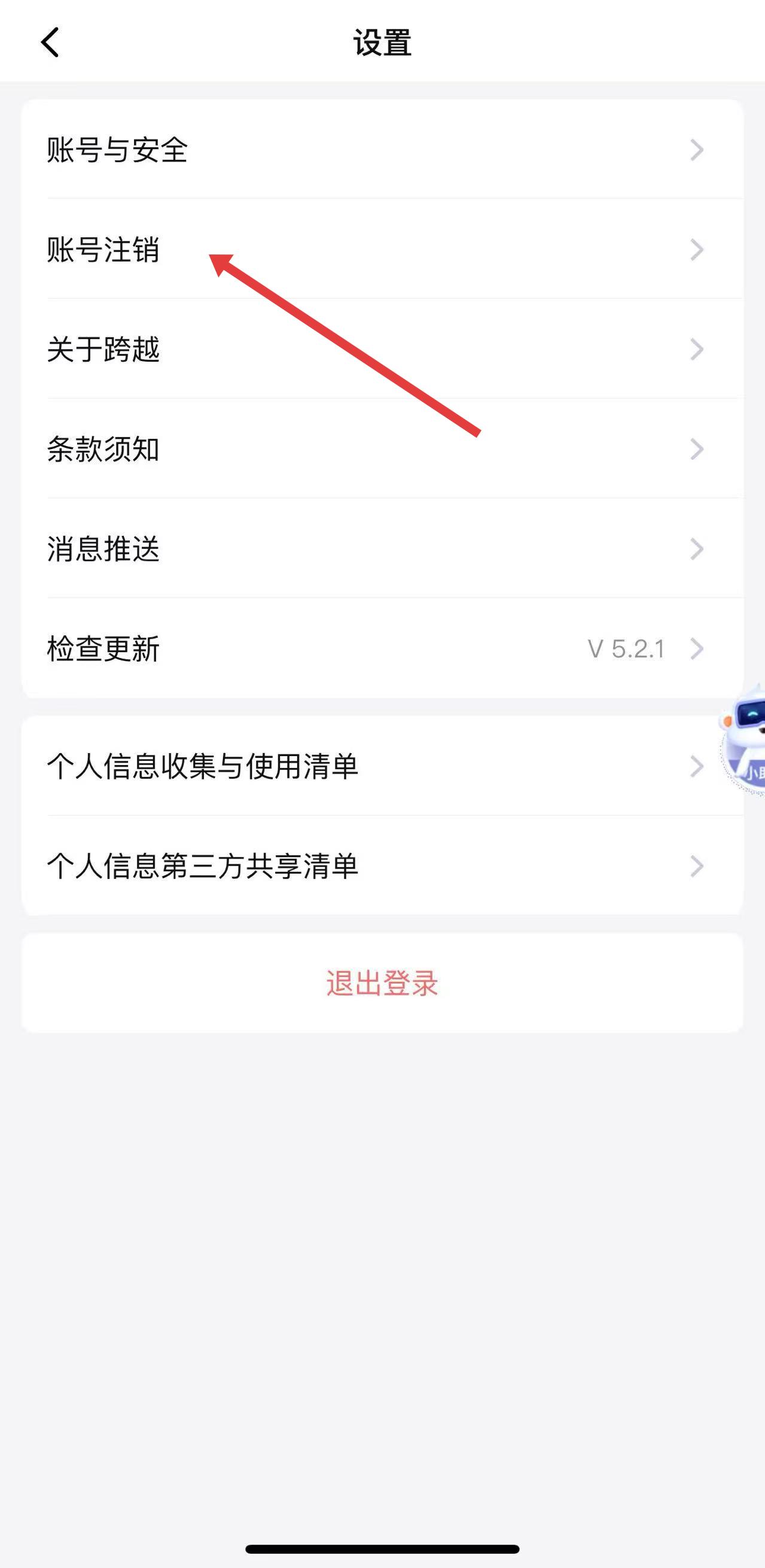 3、在設(shè)置界面里,點(diǎn)擊賬號(hào)注銷(xiāo)選項(xiàng),進(jìn)入注銷(xiāo)賬號(hào)頁(yè)面。