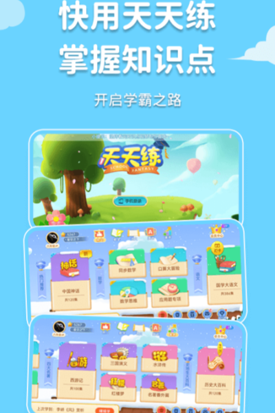 天天練app是專為中小學(xué)生在線打造的學(xué)習(xí)軟件,由樂樂課堂開發(fā),憑借豐富的課程內(nèi)容、多樣的功能特點,為中小學(xué)生提供了優(yōu)質(zhì)的學(xué)習(xí)資源和高效的學(xué)習(xí)體驗,將學(xué)習(xí)過程游戲化,以激發(fā)學(xué)生的學(xué)習(xí)興趣和積極性,將每個知識點轉(zhuǎn)化為一個關(guān)卡,難度遵循先易后難的原則,增加學(xué)習(xí)的動力和成就感。