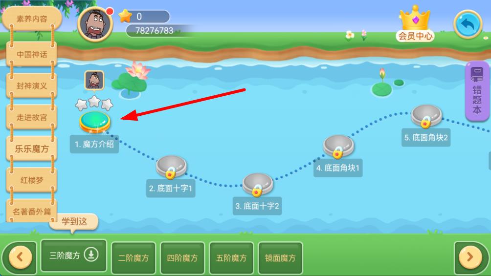 3、進(jìn)入后能看到學(xué)習(xí)路徑圖,按照路徑圖順序?qū)W習(xí),還能在下方選擇不同類型魔方的學(xué)習(xí)內(nèi)容。