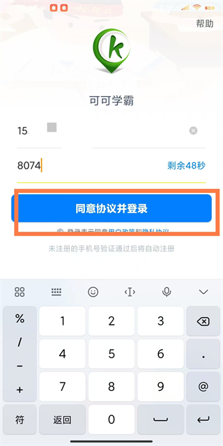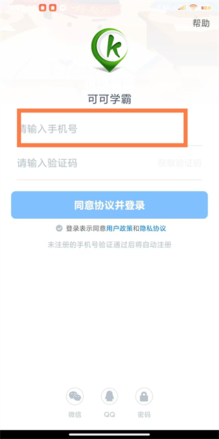 1、在可可學霸登錄頁面,輸入手機號。