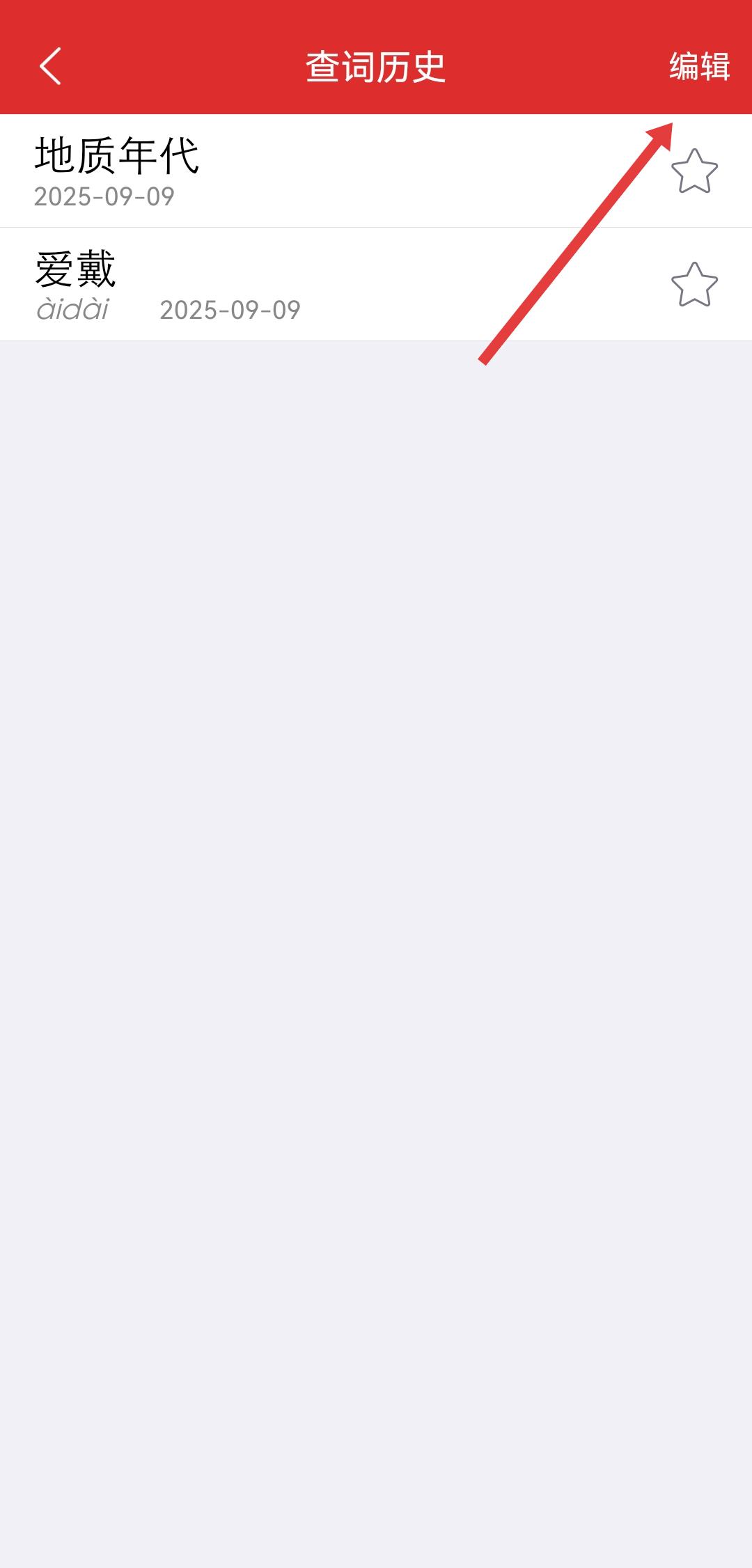 3、在“查詞歷史”頁面,點擊右上角的編輯按鈕,進入查詞歷史的編輯模式。