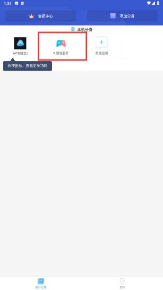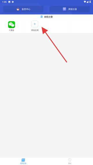 1、啟動(dòng)微分身雙開APP,在首頁內(nèi)點(diǎn)擊添加應(yīng)用的按鈕。