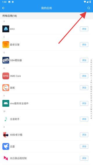 2、在我的應(yīng)用內(nèi)點(diǎn)擊右上角搜索的圖標(biāo)。