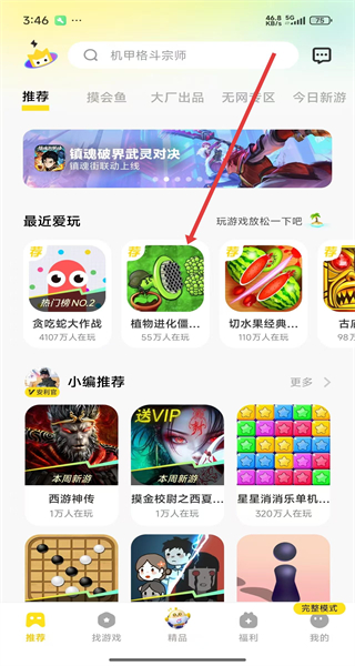 3、在進入到首頁中,可以點擊愛玩的游戲進行長按添加。