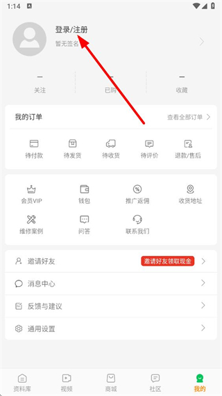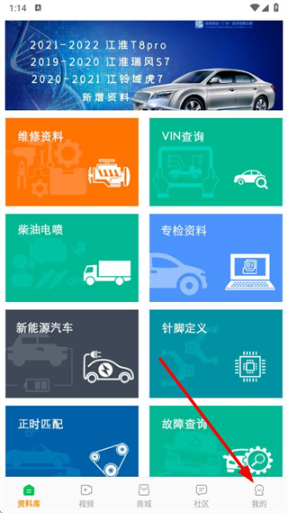 1、在修車神汽app資料庫頁面點擊我的選項,進入個人頁面。