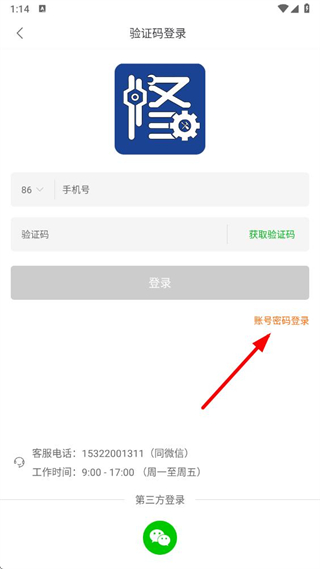 3、在驗證碼登錄頁面點擊賬號密碼登錄選項,進入賬號密碼登錄頁面。