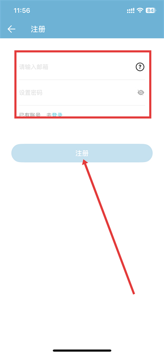4、輸入郵箱和密碼,點(diǎn)擊注冊按鈕完成登錄。