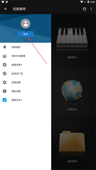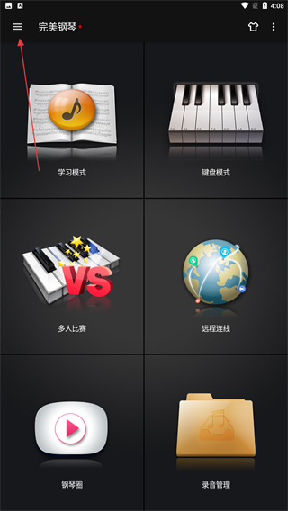 1、打開完美鋼琴APP,進入時點擊左上三個橫線圖標。