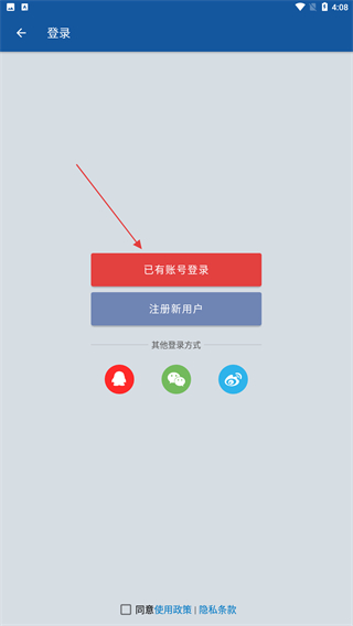 3、在登錄的頁面內,點擊已有賬號登錄的按鈕。