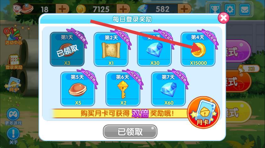 4、點擊主界面左側(cè)的登錄獎勵,在對應(yīng)的登錄天數(shù)可領(lǐng)取金幣獎勵。
