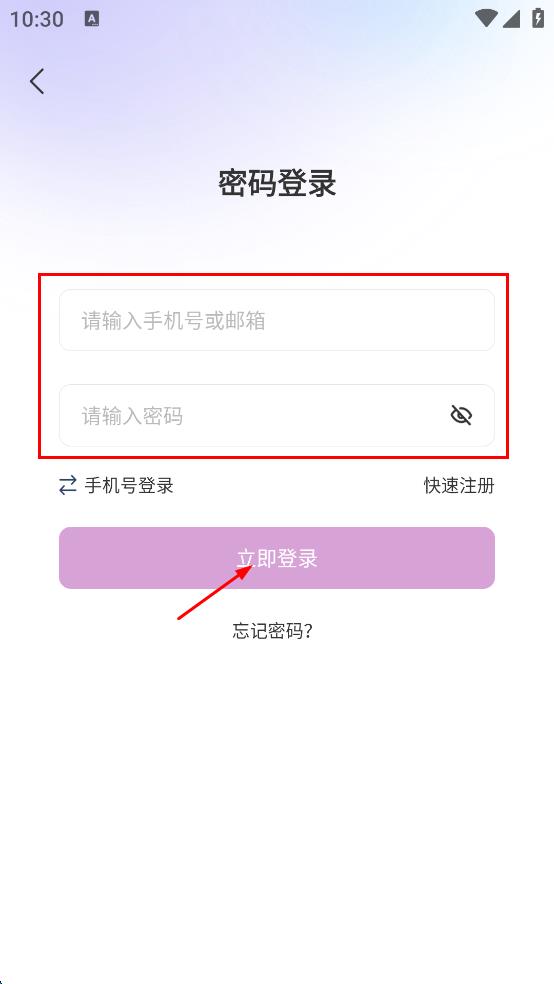 4、輸入框中填寫信息,再在“請輸入密碼”輸入框中填寫密碼點(diǎn)擊“立即登錄”按鈕完成登錄操作。