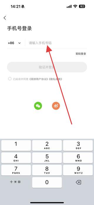 3、進(jìn)入手機號登錄頁,在請輸入手機號碼輸入框填入號碼,也可選擇微信、橙色圖標(biāo)如微博第三方登錄,勾選協(xié)議后完成登錄 。