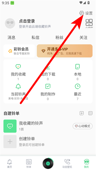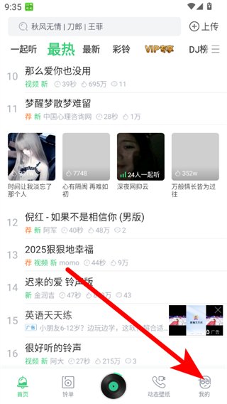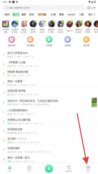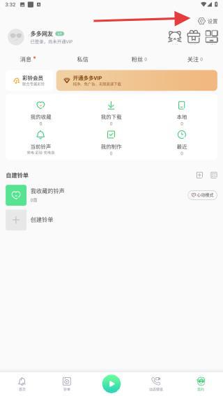 1、在鈴聲多多首頁,點擊右下角我的選項,進(jìn)入個人中心界面。