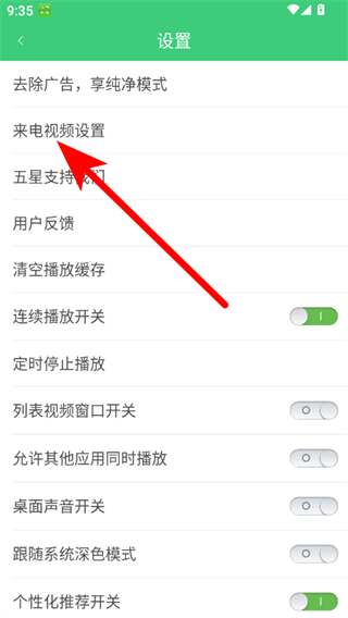 3、在設(shè)置頁面,點擊來電視頻設(shè)置選項,進(jìn)入對應(yīng)設(shè)置界面。