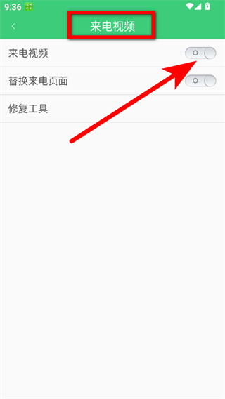 4、在來電視頻設(shè)置界面,點擊來電視頻開關(guān),即可開啟來電視頻功能。