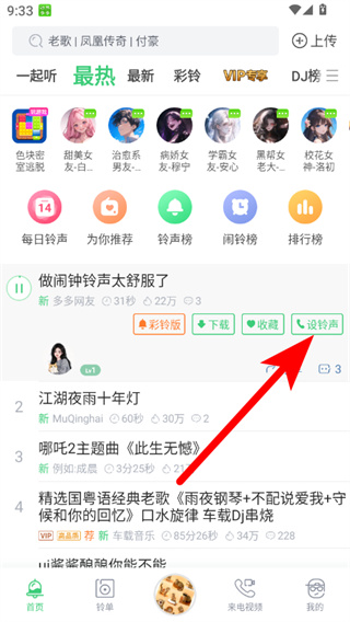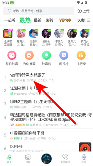 1、在鈴聲多多首頁,點擊想要設(shè)置的鈴聲,進(jìn)入鈴聲操作界面。