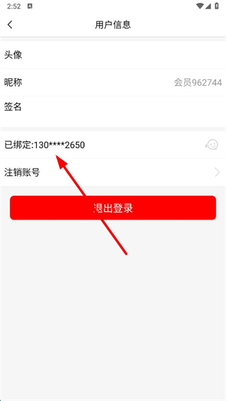 3、在用戶信息頁面點(diǎn)擊已綁定的手機(jī)號(hào)區(qū)域,進(jìn)入綁定手機(jī)頁面。