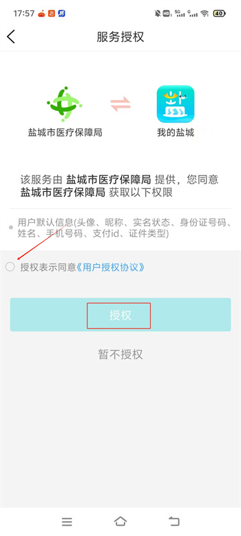 4、然后直接授權(quán)醫(yī)保查看的權(quán)限,點擊圓點同意當(dāng)前的協(xié)議,繼續(xù)點擊【授權(quán)】即可獲取到往前歷歷在目咋繳費記錄了。