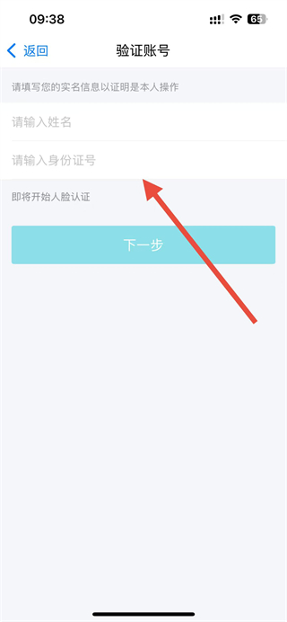 4、在驗證賬號頁面輸入姓名、身份證號,按提示完成人臉認證等操作,即可找回賬號。