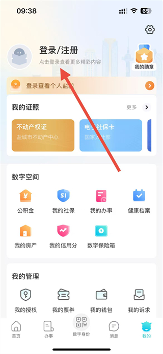 2、在個人頁面點擊登錄注冊區(qū)域,進入登錄頁面。