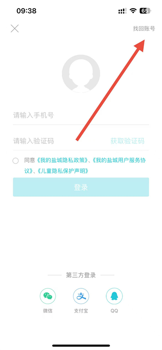 3、在登錄頁面點擊找回賬號選項,進入驗證賬號頁面。