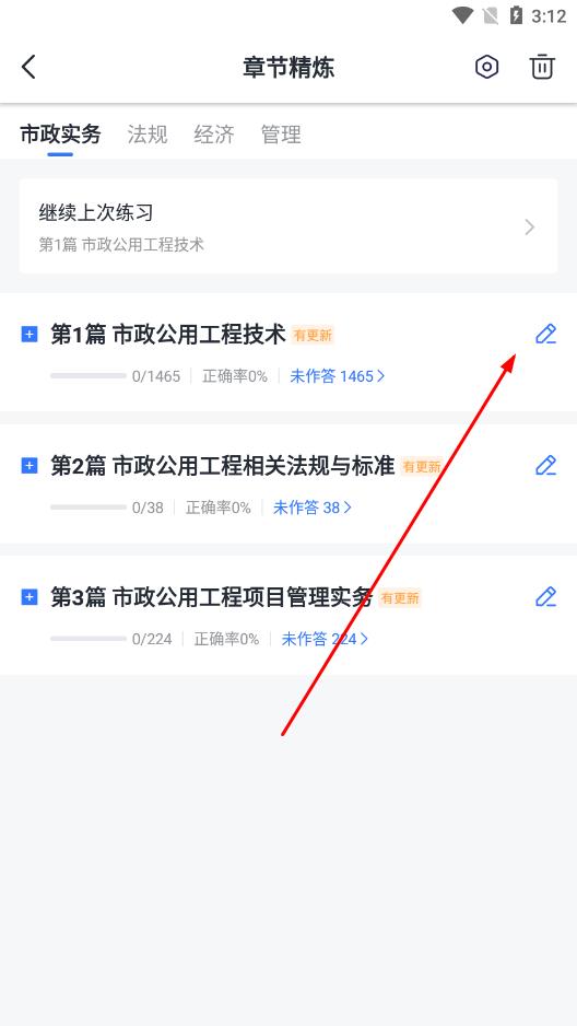 2、進(jìn)入章節(jié)精煉頁面后,選擇對(duì)應(yīng)的科目篇章,點(diǎn)擊篇章右側(cè)的編輯類圖標(biāo)。