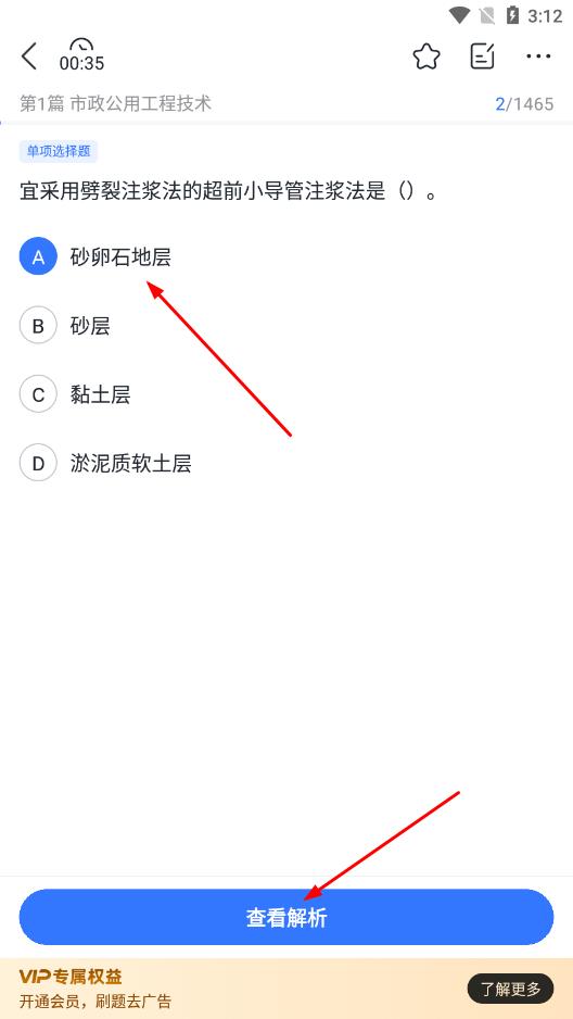 3、進(jìn)入題目頁面,完成題目作答后,點(diǎn)擊頁面下方的查看解析按鈕。