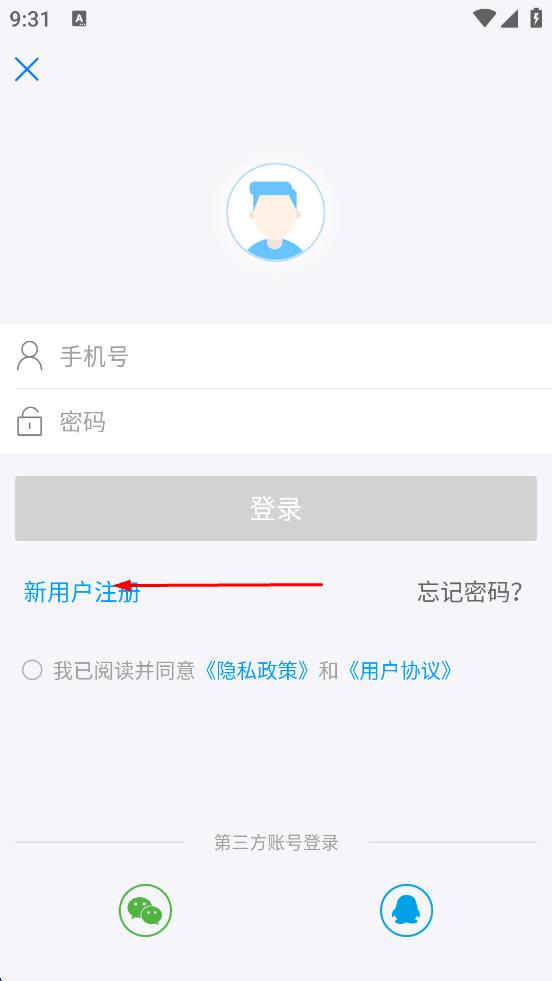 3、在登錄注冊選擇頁面,點擊“新用戶注冊”選項,進入注冊信息填寫頁面。