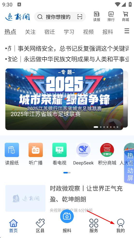 1、打開速新聞軟件,進入首頁后,點擊右下角“我的”按鈕,進入個人中心頁面。