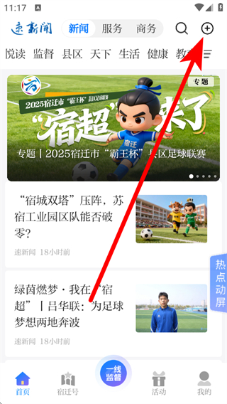 1、在速新聞首頁,點擊右上角加號選項,展開功能菜單。