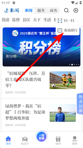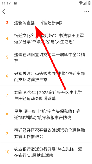 3、在資訊排行頁面,點擊速新聞直播|條目,進入新聞詳情界面。