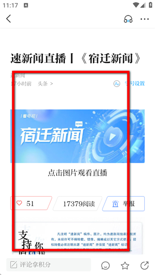 4、在新聞詳情界面,點擊圖片區(qū)域,即可觀看最新新聞直播。