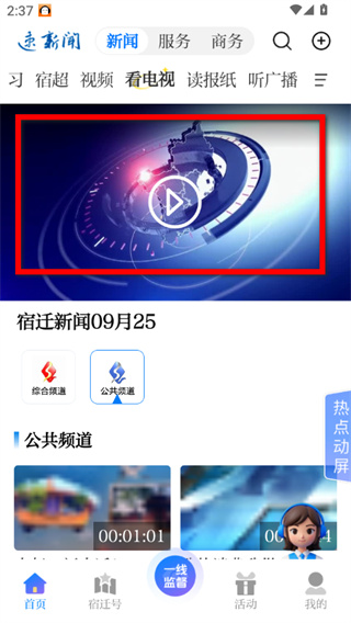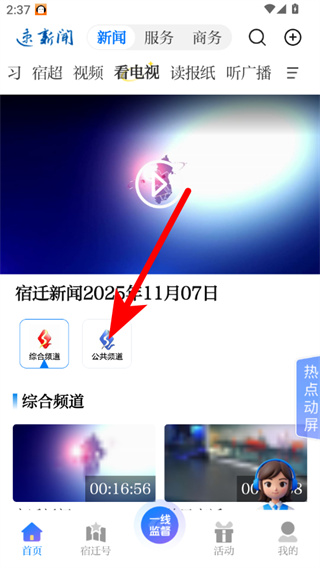 2、在看電視頁面,選擇公共頻道或綜合頻道,進入對應頻道界面。