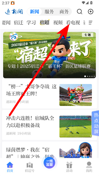 1、在速新聞首頁,點擊上方看電視選項,進入看電視頁面。