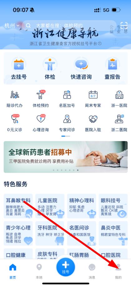 1、打開(kāi)浙江健康導(dǎo)航APP,在首頁(yè)點(diǎn)擊底部導(dǎo)航欄中我的選項(xiàng)。