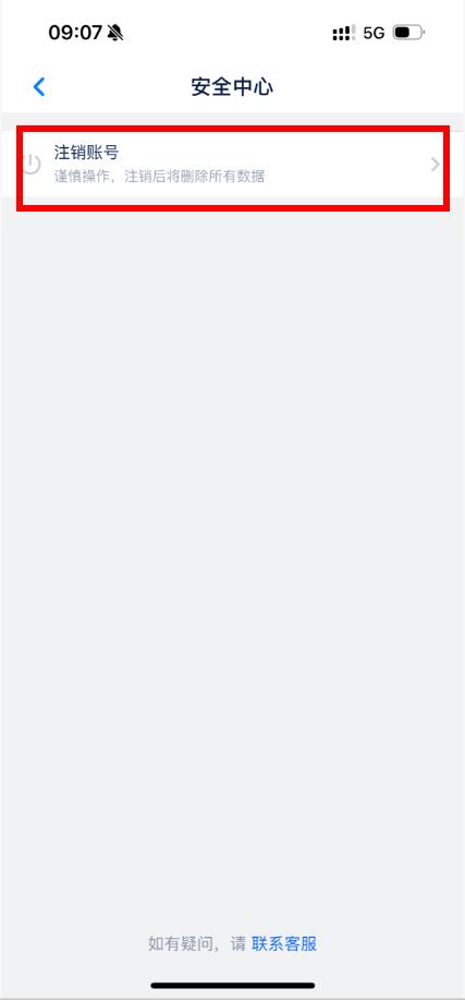 5、在安全中心頁(yè)面,點(diǎn)擊注銷(xiāo)賬號(hào),按提示謹(jǐn)慎操作。